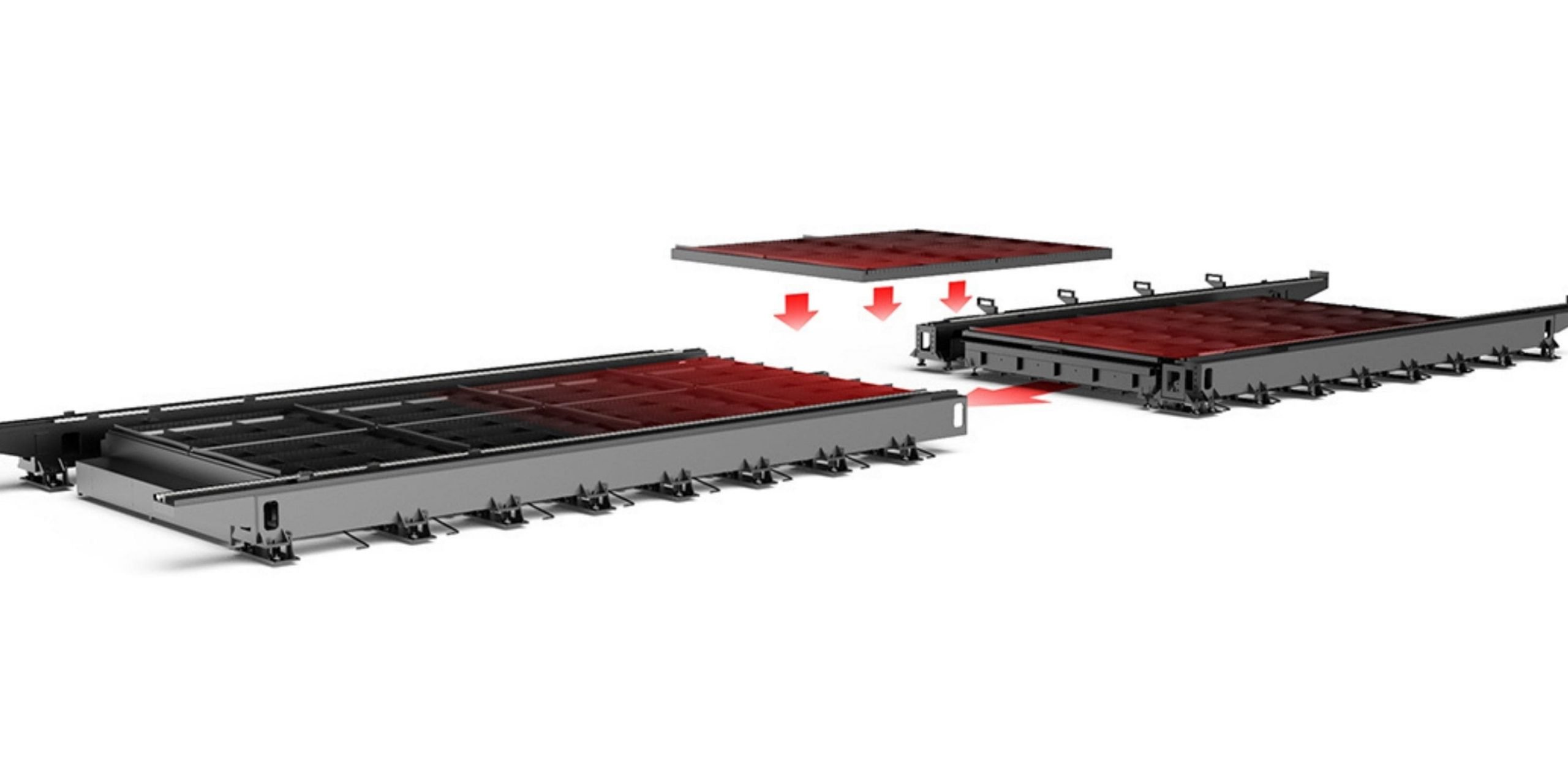 Seria GS-CEL to lasery światłowodowe z możliwością obróbki wielkoformatowych arkuszy. Stół maszyny posiada konstrukcją bramową z segmentowaną strukturą, co umożliwia swobodne dostosowywanie formatu obróbki zgodnie z wymaganiami. To najlepszy wybór jeżeli potrzebujesz naprawdę dużego stołu roboczego dla swojej produkcji.
