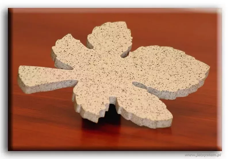 - niska emisja zanieczyszczeń – takich jak pył i gazy, które są charakterystyczne dla innych technologii obróbki materiałów kruchych, takich jak kamienie naturalne. Eliminacja pyłów przekłada się na znaczną poprawę warunków w zakładzie produkcyjnym.